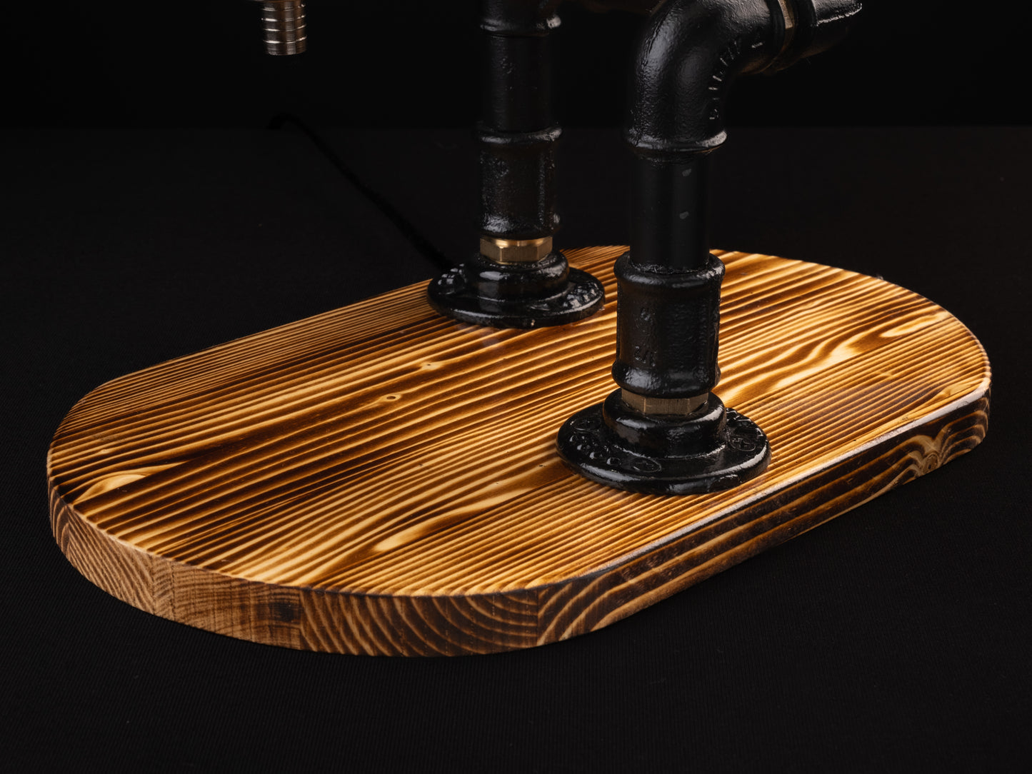 Die Lampenteile bestehen aus hochwertigem Messing – robust, langlebig und stilvoll. Die Holzelemente sind aus massivem Kiefernholz gefertigt, sorgfältig dreifach geschliffen, anschließend kunstvoll gebrannt und veredelt.“