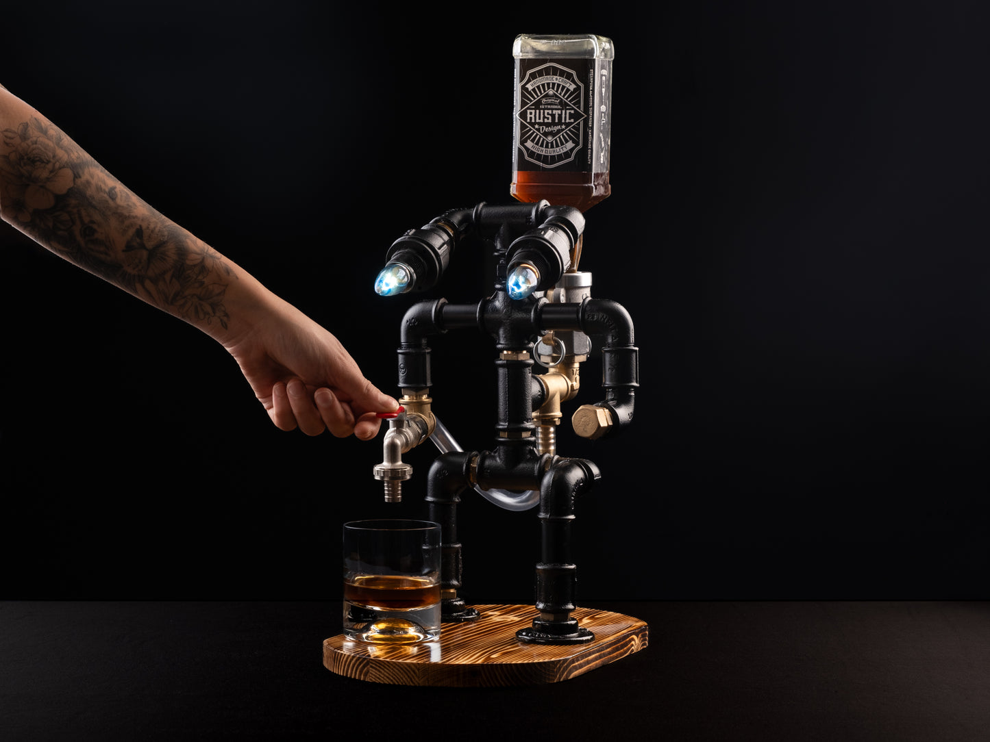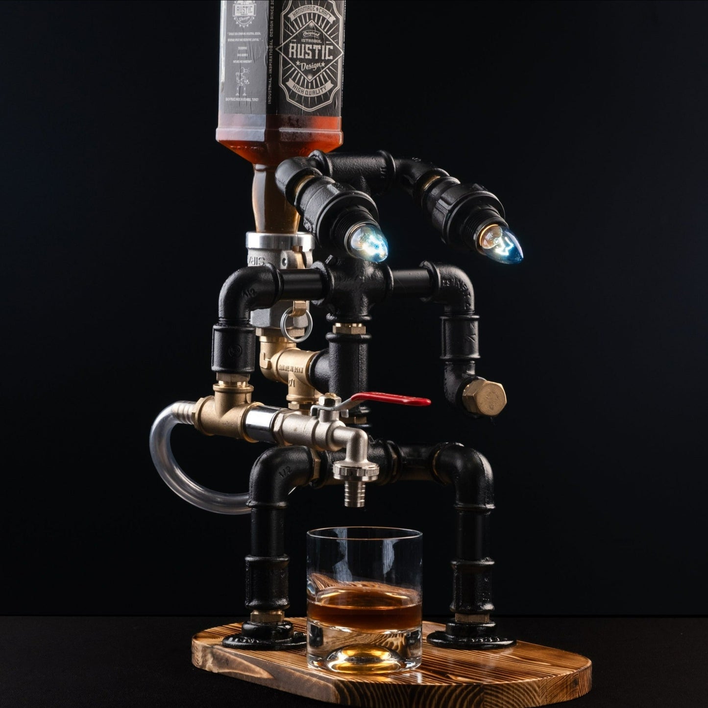 ⚡ Kraftvoller Steampunk-Look mit mystischem Flair ⚡ Kombination aus Dekoration, Spirituosenspender & Lampe ⚡ Handgefertigt – jedes Stück ein Unikat ⚡ Beleuchtung inklusive – für die perfekte Stimmung ⚡ Passt auf alle gängigen Flaschen ⚡ Ein außergewöhnlicher Hingucker & ideales Geschenk