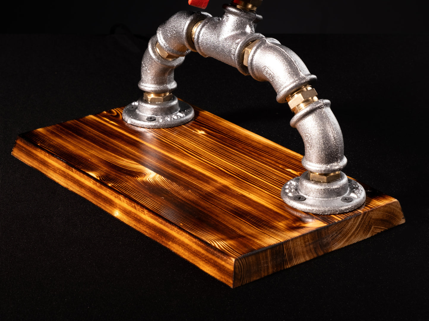 Die Lampenteile bestehen aus hochwertigem Messing – robust, langlebig und stilvoll. Die Holzelemente sind aus massivem Kiefernholz gefertigt, sorgfältig dreifach geschliffen, anschließend kunstvoll gebrannt und veredelt.“